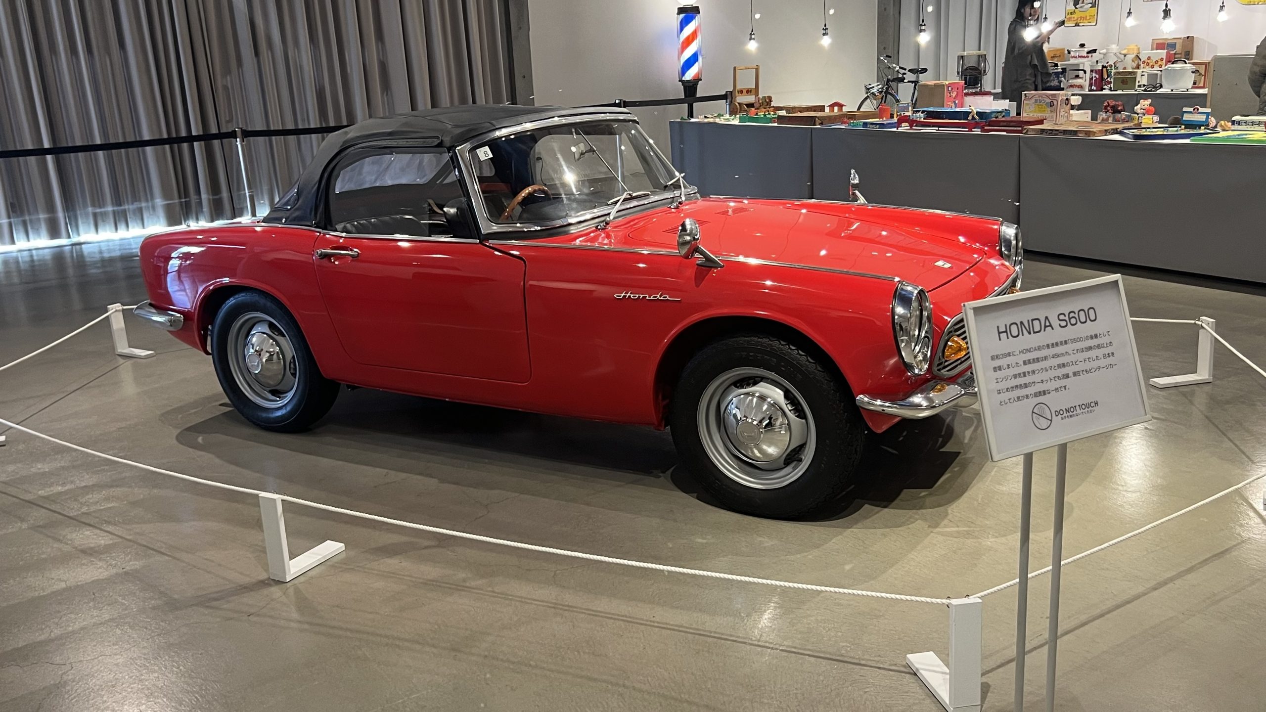 会場に足を踏み入れると、そこに広がっていたのは昭和の暮らしや遊び、デザインがぎゅっと詰まった空間。 懐かしい家電や玩具、駄菓子、ゲーム機が並ぶ中でS600はまるで「当時からそこにあった一台」のように自然に溶け込んでいました。